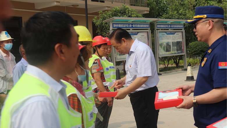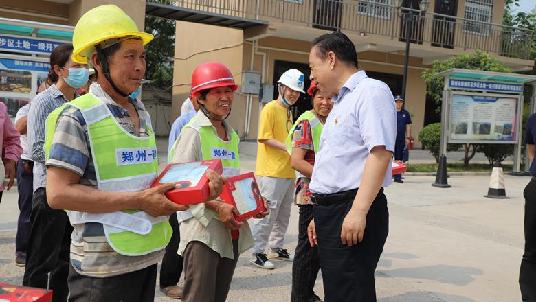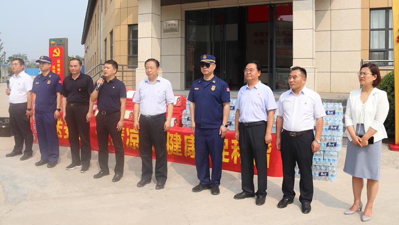 進(jìn)入夏季以來,持續(xù)出現(xiàn)的高溫天氣,給奮戰(zhàn)在建設(shè)一線的施工人員帶來嚴(yán)峻考驗(yàn),廣大職工不畏酷暑,堅(jiān)守崗位,辛勤付出。為做好廣大職工的防暑降溫工作,切實(shí)保護(hù)職工身體健康,6月11日,鄭州市總工會、鄭州市消防救援支隊(duì)到鄭州地產(chǎn)集團(tuán)西流湖公司中原新區(qū)土地一級開發(fā)項(xiàng)目指揮部開展主題為“送清涼、送安全、送健康、促和諧”的夏季送清涼活動(dòng)。鄭州市一級巡視員、市總工會黨組書記、主席趙新中,市消防救援支隊(duì)副支隊(duì)長、滅火救援指揮部部長李隆,市總工會副主席宋少丹,鄭州地產(chǎn)集團(tuán)有限公司監(jiān)事會主席、工會主席李靜波及西流湖公司黨支部書記、董事長、總經(jīng)理吉獻(xiàn)亮等領(lǐng)導(dǎo)出席活動(dòng)。活動(dòng)由西流湖公司副總經(jīng)理昌磊主持。