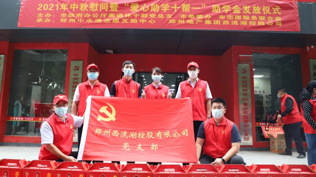 在中秋佳節來臨之際,由鄭州市政府辦公廳離退休干部黨總支、鄭州市希望工程辦公室、鄭州市志愿服務聯合會主辦,鄭州市小水滴志愿互助中心、鄭州地產集團西流湖控股公司聯合承辦的2021年中秋慰問暨“愛心助學十幫一”助學金發放儀式于9月17日上午在鄭州共青團青春家園舉行。