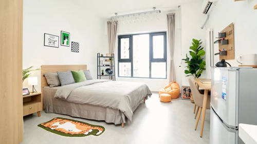 李博租住的公寓內(nèi),配備了智能門鎖、獨立衛(wèi)浴、床、衣柜、書桌、洗衣機、空調(diào)、冰箱、抽油煙機、晾衣架等,有暖氣無燃氣。李博說,自己每天大部分時間都在學校,騎車到公寓單程約20分鐘,“公寓的環(huán)境和配套都挺好的,滿足自住完全沒問題。”