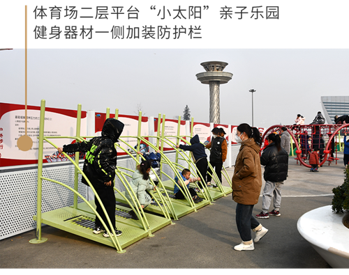 快樂成長,安全為先。為了確保兒童游樂區的安全,鄭州奧體中心從細節處著手精心加裝了多種防護裝置,在奧體中心西北角區域加裝隔離花箱、石墩,確保行人與機動車分離。同時,在體育場二層平臺兒童聚集較多的天井內,加裝防護網;在健身器材一側加裝防護欄;在通往二層平臺的步梯兩側加裝防滑球......這些防護裝置均經過嚴格的現場論證和質量檢測,確保其具有優異的耐用性和穩定性。通過這些措施,鄭州奧體中心致力于為孩子們打造一個既充滿樂趣,又安全無虞的游樂環境。