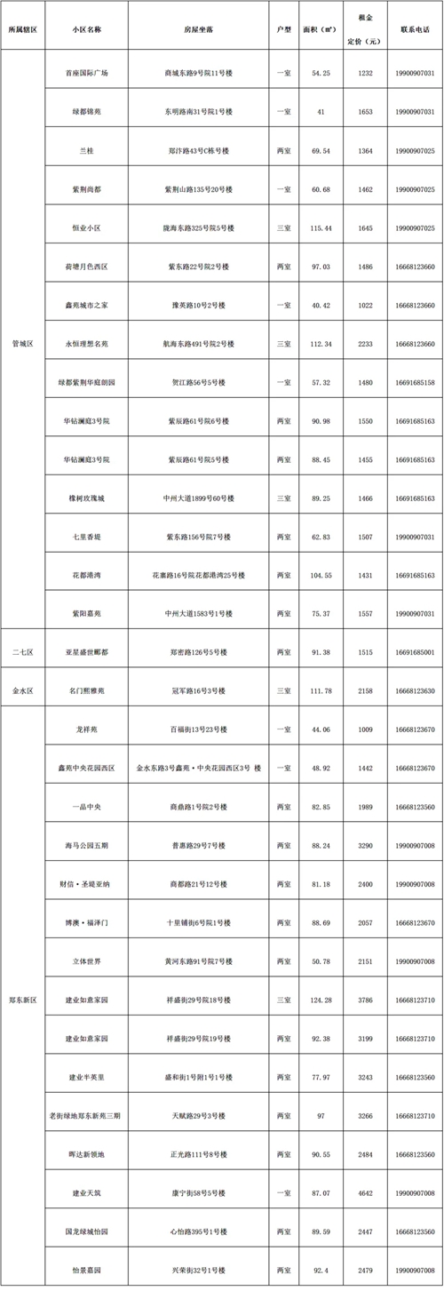 本批次配租房源共計(jì)32套(61間),其中鄭東新區(qū)15套(28間)、管城區(qū)15套(28間)、二七區(qū)1套(2間)、金水區(qū)1套(3間)。水電費(fèi)均為民用水電標(biāo)準(zhǔn),房源精裝修交付,周邊配套設(shè)施齊全,配備家具家電,拎包入住,后續(xù)房源將根據(jù)裝修進(jìn)度情況陸續(xù)配租。運(yùn)營(yíng)單位為鄭州城發(fā)安居有限公司。聯(lián)系電話(huà):4001261666。