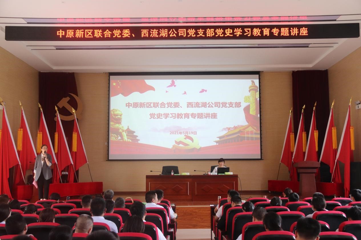 黨史是最好的教科書(shū)和營(yíng)養(yǎng)劑,在中國(guó)共產(chǎn)黨成立100周年之際,為扎實(shí)開(kāi)展好黨史學(xué)習(xí)教育,引導(dǎo)廣大黨員干部職工知史愛(ài)黨、知史愛(ài)國(guó),進(jìn)一步樹(shù)牢“四個(gè)意識(shí)”、堅(jiān)定“四個(gè)自信”、做到“兩個(gè)維護(hù),推動(dòng)黨史學(xué)習(xí)教育取得實(shí)效,5月19日下午,中原新區(qū)聯(lián)合黨委、西流湖公司黨支部邀請(qǐng)河南省委黨校黨史教研部副主任、副教授楚向紅老師開(kāi)展黨史學(xué)習(xí)教育專題講座。公司領(lǐng)導(dǎo)班子、西流湖公司、鄭地發(fā)展以及中原新區(qū)聯(lián)合黨委黨員職工代表共計(jì)150余人參加講座。