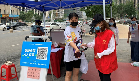 疫情防控刻不容緩。志愿者們首先仔細(xì)詢問了社區(qū)值守人員防疫工作流程及細(xì)節(jié),認(rèn)真記錄社區(qū)防疫的步驟和相關(guān)要求。志愿者們配合社區(qū)工作人員提醒大家正確佩戴口罩,對進出社區(qū)人員進行健康掃碼和體溫測量,一個個忙碌的身影為社區(qū)抗疫一線筑牢“防護墻”。