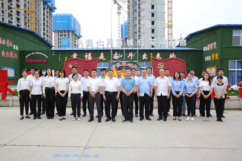 為充分發揮支部戰斗堡壘作用和黨員先鋒模范作用,商城佳苑項目建設單位(鄭州商都控股集團有限公司)和施工單位(中建七局)黨支部,緊扣“三項工程、一項管理”工作重心,遵照“圍繞項目抓黨建,抓好黨建促項目”工作思路,聯合成立了該項目臨時黨支部,動員每位黨員凝聚思想共識,形成工作合力,增強黨建引領城市高質量建設的使命感,真正落實“支部建在項目上,黨旗插在工地上”。