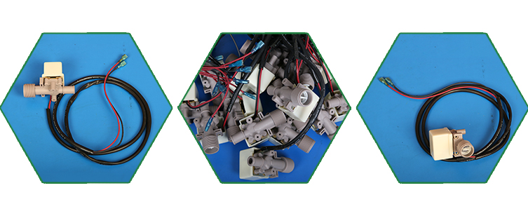 解決方法:初步確定為進水系統故障,首先確認進水系統總開關及分開關是否打開,如正常打開,再檢查進水過濾器鋼絲過濾網是否堵塞,如無堵塞,再擰開進水閥接頭,檢查進水閥過濾網有無堵塞,如無堵塞,再用手托起水位感應器浮球,觀察進水閥有無變化,如無變化,可以初步確定為水位感應器或進水閥損壞,我們可以用萬用表來檢測進水閥的電阻值。進水閥的正常電阻值為: Ω,如果測量超出這個范圍,我們可以確認為進水閥損壞。